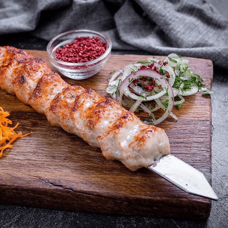 Люля-кебаб куриный — это нежные кебабы из куриного мяса, приправленные ароматными специями и обжаренные до золотистой корочки. Мягкое мясо сохраняет свою сочность и насыщенный вкус, идеально сочетаясь с приправами. Люля-кебаб куриный подойдёт как для самостоятельного блюда, так и в сочетании с гарнирами и соусами.