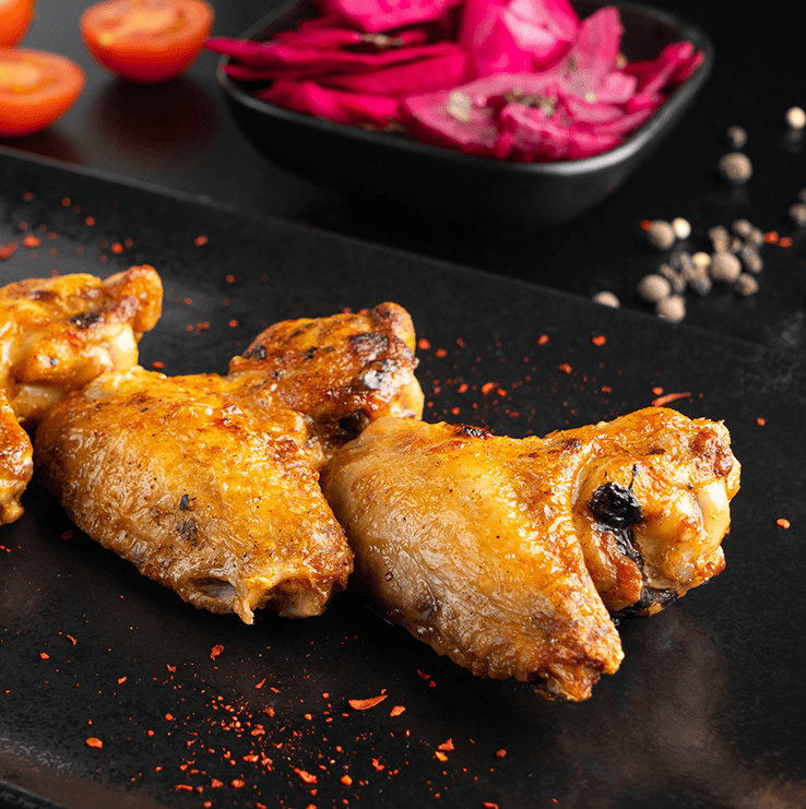 Шашлык (крылья куриные) — это аппетитные куриные крылья, обжаренные до хрустящей корочки на гриле. Мясо остаётся нежным и сочным, а специи придают блюду насыщенный вкус. Эти крылья идеально подходят для сытного перекуса или основного блюда, прекрасно сочетаются с соусами и овощами.