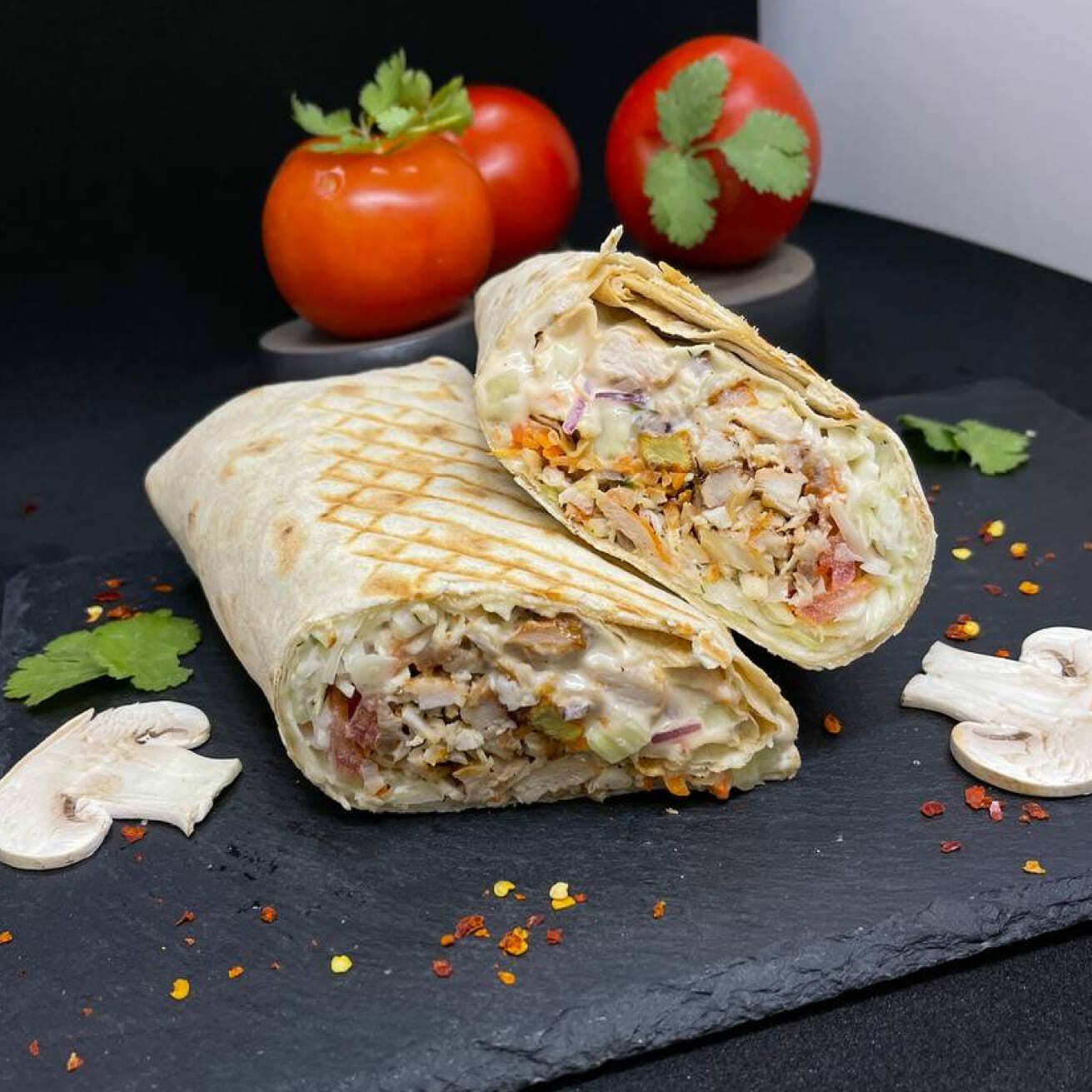 Шаурма грибная с курицей